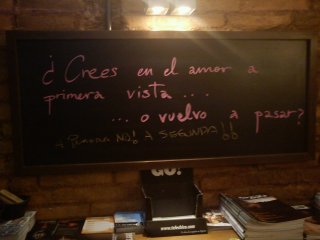 Y como iba diciendo, las pizarras que cuelgan de las paredes de este bar, las frases que escriben en ellas los camareros y que van renovando cada pocas semanas, se han convertido también en mis pequeñas perlas, palabras de sabiduría o simplemente de ánimo que, al igual que aquel lejano panel publicitario del metro, siempre llegan cuando más las necesito. Frases tontas quizá pero que siempre han aparecido el día en que cavilaba acerca de esos temas, como para darme ánimos o confirmarme que siga confiando en mi instinto. Lo de siempre: señales que te van guiando, como el camino de baldosas amarillas de Dorothy.