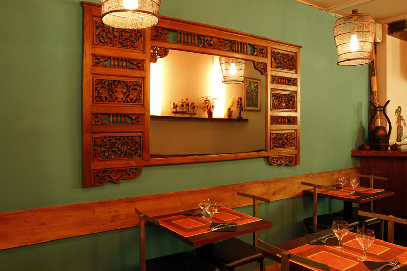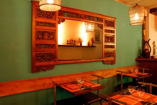 Es medio nómada, ella, se pasó un año recorriendo la India y buena parte de Asia, así que parecía adecuado traerla aquí, un restaurante especializado en cocina del sudeste asiático. El espacio es reducido pero tiene buena acústica, invita a las confidencias. Los colores, verde y naranja, un espejo y algunas figuras de madera son toda la decoración; el toque exótico necesario sin parecer Port Aventura.